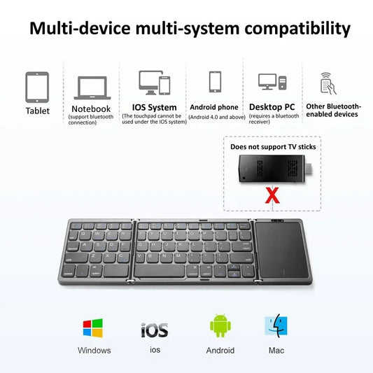 3-Folding Keyboard Mini Wireless Keyboard Foldable Dual Bluetooth Keyboard with Touchpad for Windows Android IOS iPad Phone